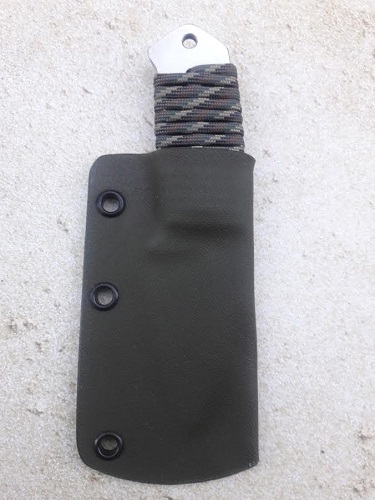 Similar to the original Goblin but with a drop point and no thumb serrations. Ground from 1/8" stock, 5 1/2" overall with a 2 1/2" blade. Available with either scales or cord wrap. Kydex sheath is standard. Cord wrap version starts at $110, version with scales starts at $150. As shown with orange G-10 scales and Kydex, $160. ![]() ![]() A Goblin II in woodland camo cord wrap and an olive drab Kydex sheath. | Goblin II 1 | Seneca 1 | | Return Home | What's New | Fixed Blades 1 | Folders | Features and Options | Ordering and Contact Information | Available Knives | Frequently Asked Questions | Shop Tour | Other Stuff | Fixed Blades | |