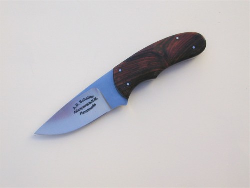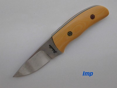 An Imp with cocobolo scales. As shown, $135 | Imp | Worker 1 | Huron | Worker II 1 | Goblin | Goblin II 1 | Seneca 1 | | Return Home | What's New | Fixed Blades 1 | Folders | Features and Options | Ordering and Contact Information | Available Knives | Frequently Asked Questions | Shop Tour | Other Stuff | Fixed Blades | |
